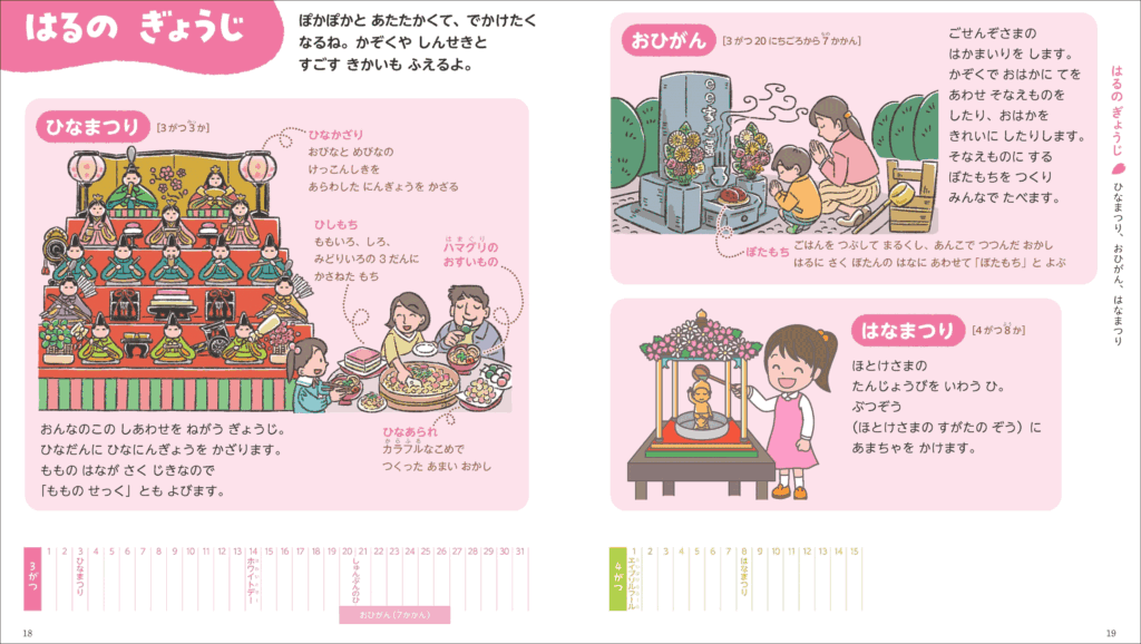 本書には、日本の季節や行事がひとめでわかる「きせつカレンダー」も収録されている。